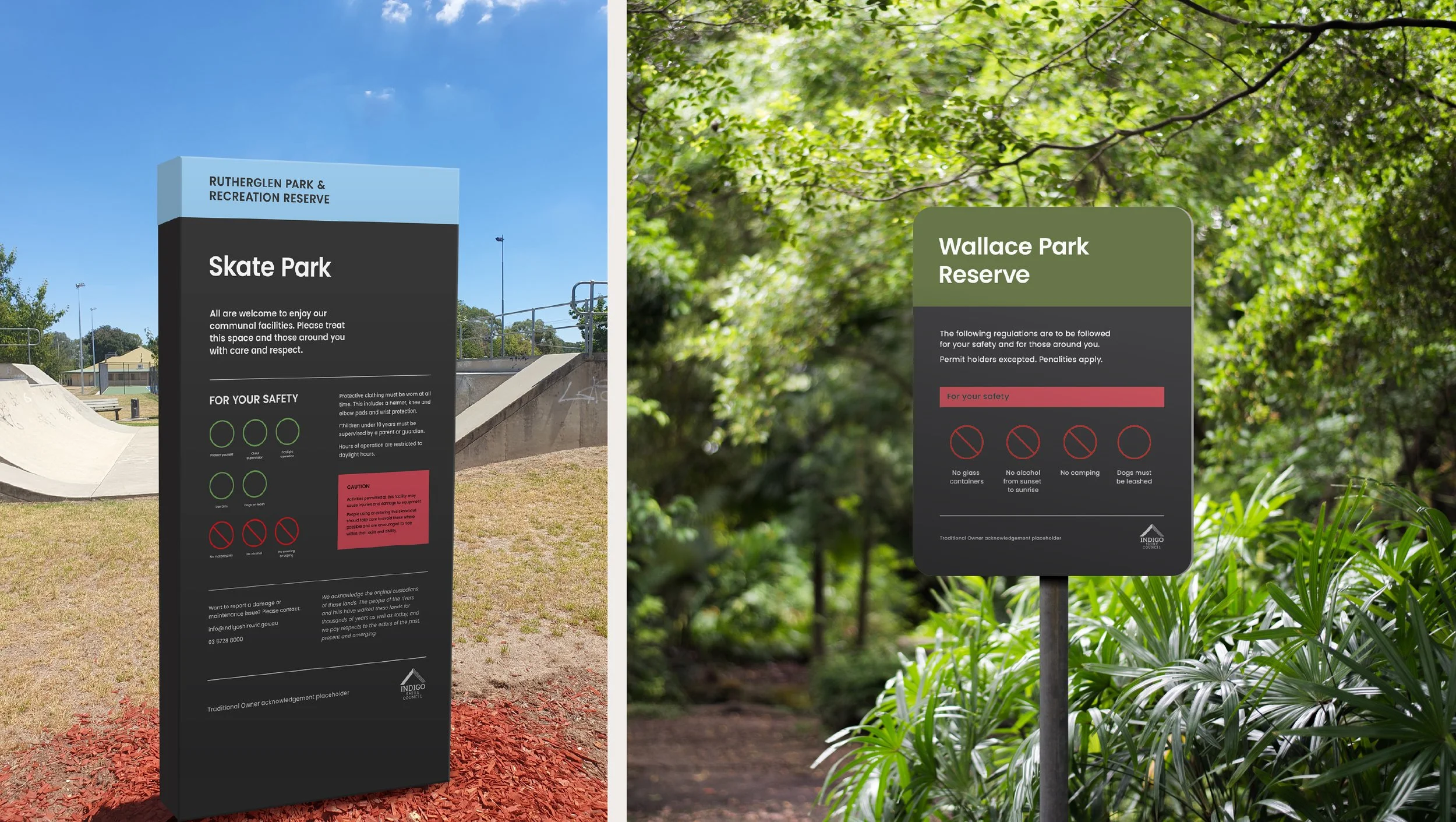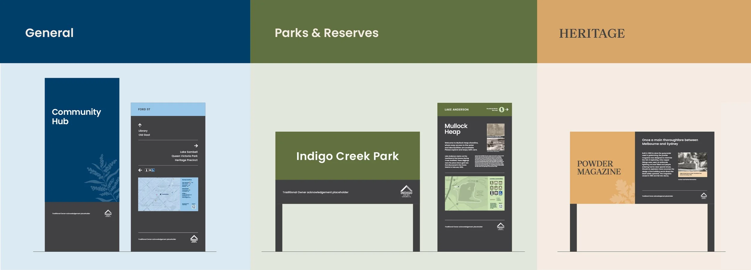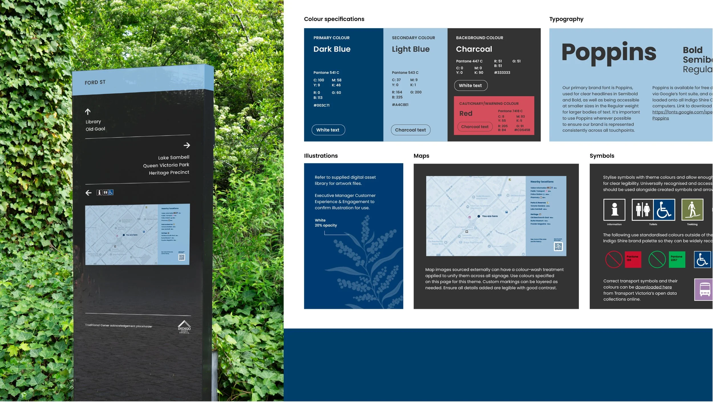 The result is a simple, but sophisticated, approach to signage within Indigo Shire, that can be effectively executed by all Council departments and signage contractors.